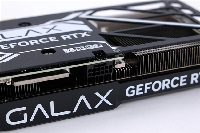 让我们旋转180度,显卡的背面为纯黑合金背板,可提供良好的支撑能力,尾部采用大开孔透气设计,减少尾部重量的同时兼顾散热风道,可迅速将热量通过采用回流焊接工艺处理的热管与散热鳍片排出,散热也更加稳定。