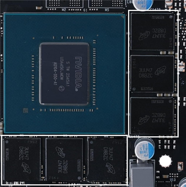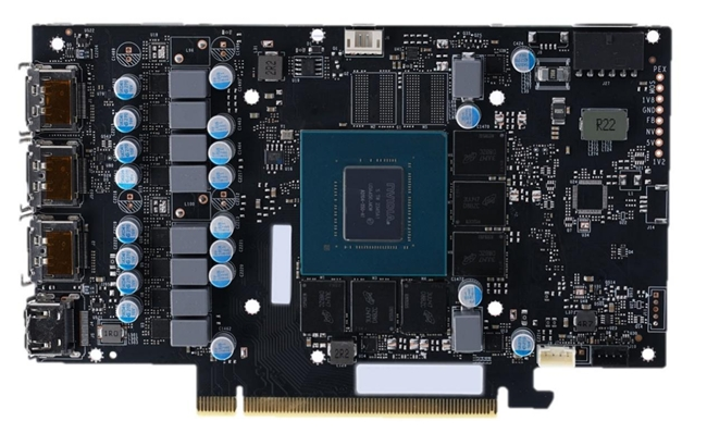 GPU旁密集分布着6颗优质显存颗粒,每颗为容量2GB,位宽192-bit的GDDR6X颗粒,显存容量合计达12GB。同时,高达21Gbps的显存频率,能让玩家和创作者在游戏画面和AI驱动图形领域增速先人一步,轻松应对各种复杂的图形运行需求。