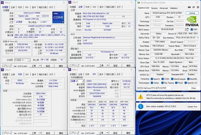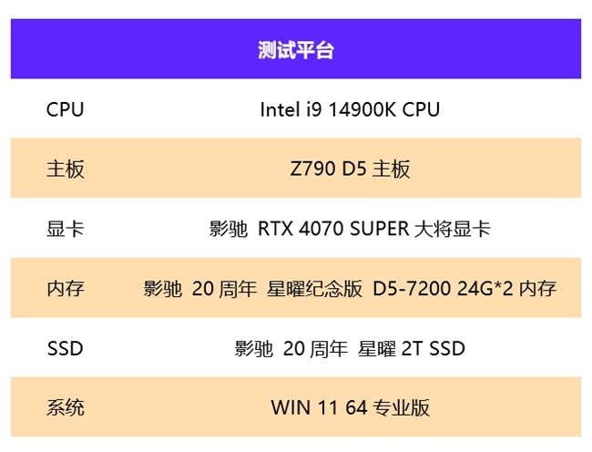 本次测试平台采用Intel i9-14900K+Z790主板的组合,可充分激发整机各部件的潜力,以便呈现影驰 RTX 4070 SUPER 大将的真实性能。