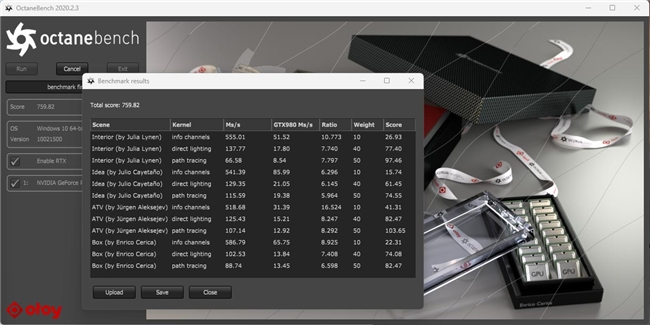 V-Ray Benchmark测试中,V-RAY CUDA得分为2242分。