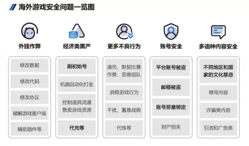 伴随着越来越多游戏厂商的出海,海外的游戏安全问题同样值得关注。相比国内,在海外由于存在不同国家和地区的文化法律差异以及玩家游戏习惯的不同,其游戏安全问题也会有所不同。