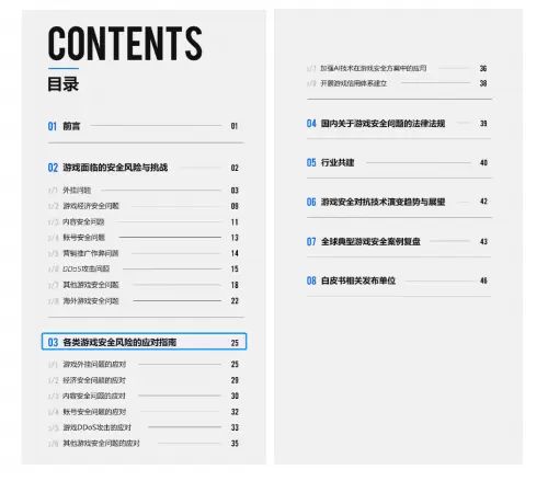 值得注意的是,今年的游戏安全白皮书,参与编纂、修订审核的专家共50余人,多为从事游戏安全业超过10年的技术专家。内容干货十足,从问题盘点,到解决建议和指南,再到行业发展趋势、我国法律法规以及全球游戏安全事件复盘,都有非常完善和体系化的阐述,读者可以从中窥探到最新的游戏安全行业趋势、问题与挑战、应对方法。