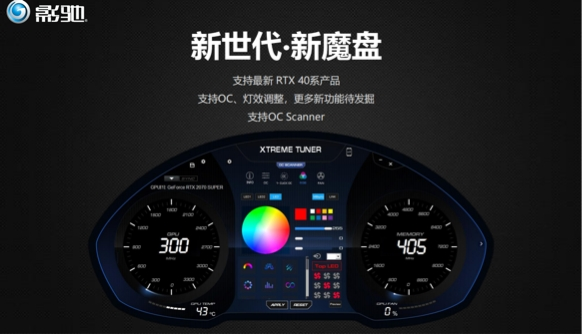 影驰的RTX 40系产品还加入了影驰 XTRME TUNER 新世代‧新魔盘,支持OC、灯效调整,支持OC Scanner等功能!让用户实现超频,温度监控等等,还有更多新功能等待发掘,尽请期待!