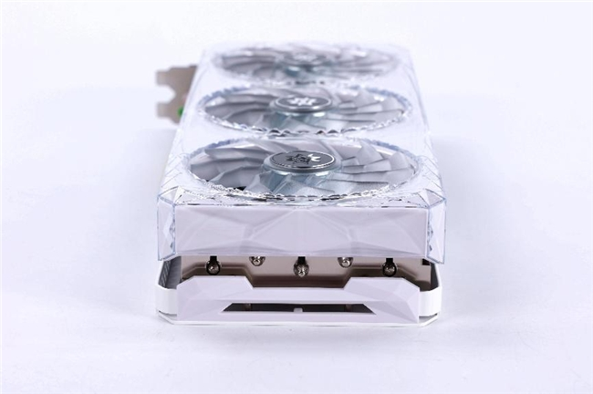 好了说回显卡,在外观方面,影驰GeForce RTX 4070 SUPER星曜OC依旧采用了纯白+透明显卡外壳的设计,第一眼看过去它有些方正,因为外壳四角的斜切设计增强了显卡的轮廓感,也得益于这个有些特殊的透明外壳,星曜才能被赋予晶莹璀璨的视觉效果;