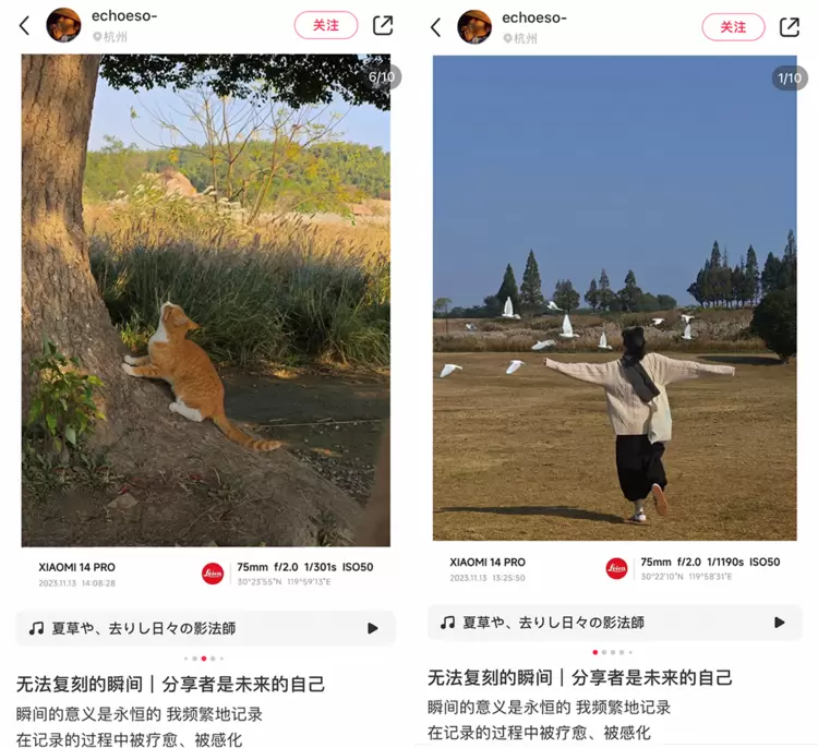瞬间的意义是永恒的。随着摄影博主@ echoeso- 按下小米14Pro的快门,徕卡光学带来独特的照片质感,映衬着每个微小瞬间 —— 晨昏泛着金光的天边、夕阳下调皮的小猫,生命与自然在美好中交融。
