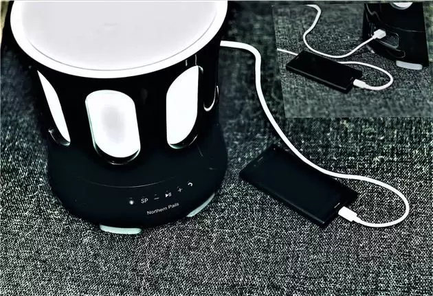 鉴于其防水特性,我们还可以用它来冰镇饮料,装满了水和冰的音箱并不会影响到音乐品质。据官方称,音箱机身白色洞状部分用于高音,低音则安排在了音箱底部。此外,它内置了运动传感器,当夜间提起音箱时,底部的LED灯自动点亮用于照明。