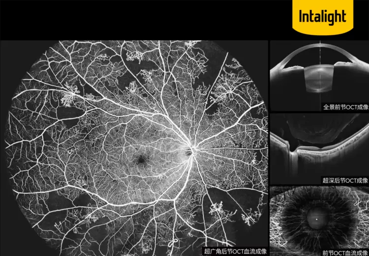 超广角扫频OCT的出现代表了眼底诊断技术的跨越式进步,而由全球高端光学眼科诊疗设备品牌Intalight赛炜创新自研的DREAM OCT产品更实现了这一技术领域的颠覆性突破。DREAM OCT集前后节OCT/OCTA于一体,扫描速度最高可达40万次/秒,最大可实现29×24 mm(约150°眼内角)一次性超广角成像,并基于此得到超过220°自动无缝拼图,眼后节OCT最大可达12 mm超级深度成像(组织中),眼前节OCT最大可达16.2 mm成像深度(空气中)。此外,赛炜首创的先进AI解决方案,可实现眼底结构自动分层及精准量化;TRUE Angio真血流算法对于微小病变和复杂病变也有更高的检测灵敏度。