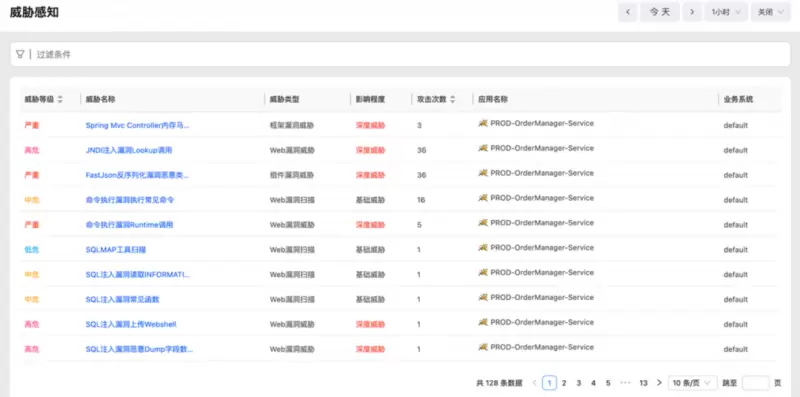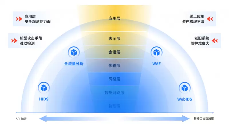 在传统的应用层安全防护策略中,流量层主要依赖 WAF进行防护,但是WAF存在介入过早,告警太多、误报高等问题;当HIDS发出告警时,攻击已经进入主机层,入侵事件已经发生,文件和数据可能已经面临泄露,并且,无法支持无文件等内存马场景。