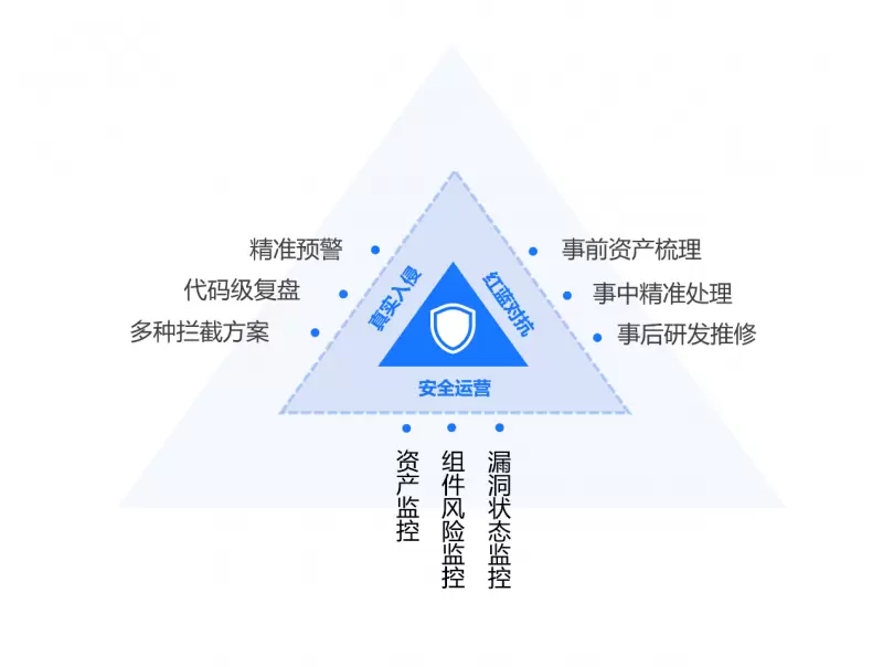安云ASPM 提供应用资产梳理能力,帮助客户主动梳理线上 API 资产、线上组件资产,并实时观测 API 的入侵防护状况。同时,进程热补丁功能可针对已发现的漏洞,在进程级别进行热补丁修复。帮助企业在事前梳理资产、在事中精准处理,在事后支持代码级复盘,在真实入侵事件、大型攻防演练与红蓝对抗中取得更大的主动。