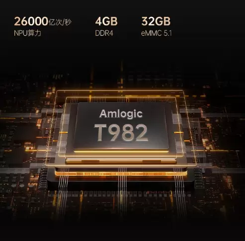其次,大眼橙X7D Pro智能投影仪搭载了万元电视同款晶晨半导体Amlogic T982旗舰芯片,NPU算力达到了惊人的26000亿次/秒,并且配备了4G+32G的超大内存,保证了各项程序的平稳运行,系统流畅、不卡顿,储存空间够大,下载再多的应用也不用担心。