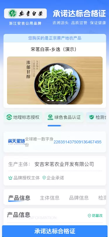 溯源查询软件是支持通过一体机识别产品标签上的溯源二维码,追踪和查询农产品溯源的生产、加工等环节的软件,靠近扫一扫产品溯源码即可查看农产品主体、流通追溯、投入品、检测认证等信息;