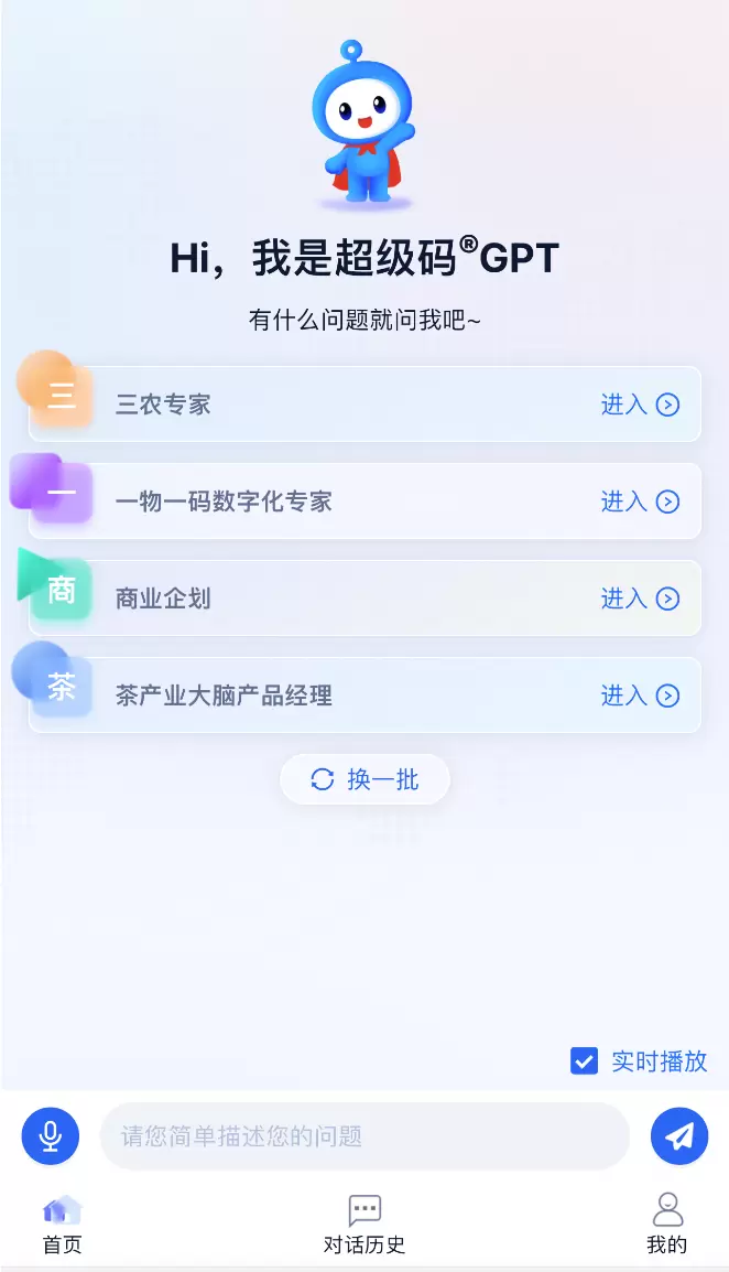 超级码合格证智能打印一体机集成超级码GPT智能语音对话产品。超级码科技股份基于大语言模型技术,针对农业和企业领域的特定需求,专注服务于农业从业者及企业管理者,在数据分析,决策支持,自动问答,客户服务,智能文案生成等方面都有着优异的表现,致力于打造您身边的专属智能顾问。