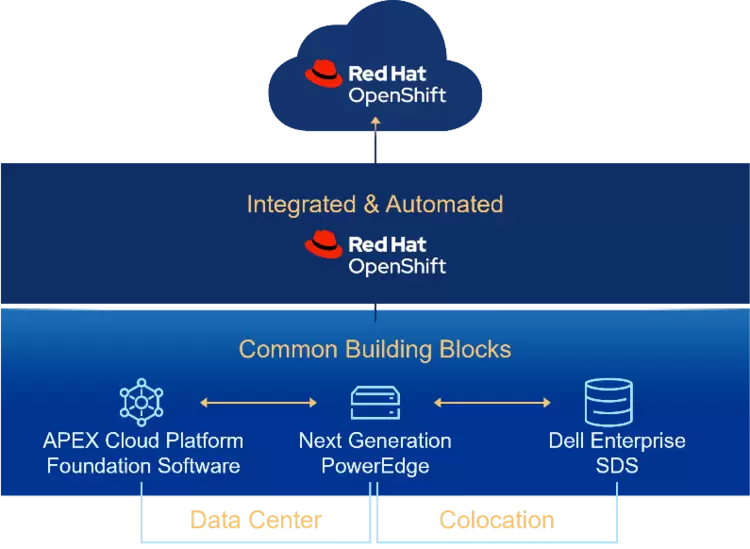 另一方面则是“从云到地”,帮助企业在本地落地更强的云原生能力,此前,戴尔APEX与微软合作定制的方案是将公有云的能力引入到企业本地,而这次,APEX则是用戴尔的硬件与OpenShift打包,帮助企业快速将构建云原生能力。
