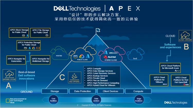 2023年,戴尔科技的APEX在多云方面有大动作,对于一家以硬件基础设施为主的服务商而言,它与公有云厂商和红帽、VMware的行业内合作,对行业进步而言有很多突破性意义,对于用户而言,可以看到的是一个整合度更高的IT技术架构。
