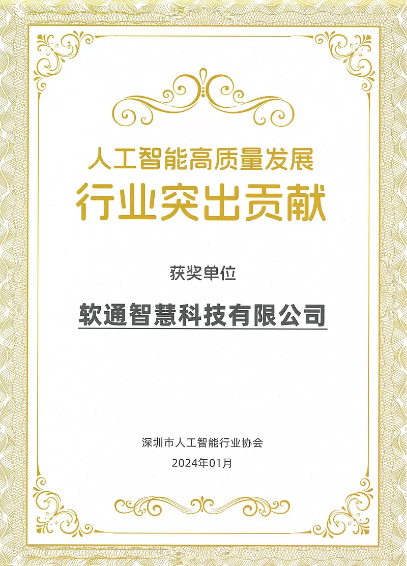 - 软通智慧荣获人工智能高质量发展“行业突出贡献奖”