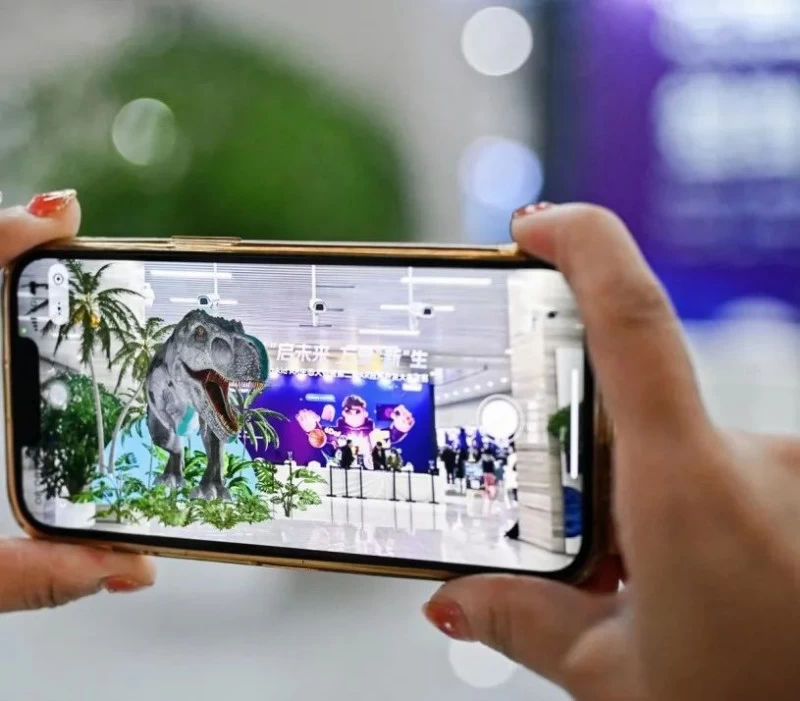 生态大会期间,游戏和互动展台也在同步展出,“30+5+2”的展台设置展现了元宇宙行业丰富的链条,30个决赛入围作品提前向观众展示了AR的巧思和新应用。5个互动游戏展台,趣味性十足的同时也充分展示了Rokid具备的“以手势交互为核心的空间计算能力”,而2个Rokid灵境体验区,则让观众一秒穿越到了白垩纪的恐龙时代和深邃神秘的海洋世界,感受元宇宙的无限魅力。