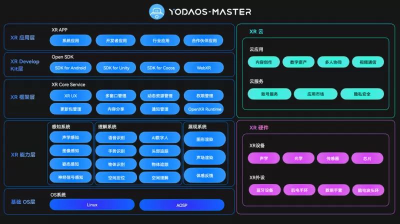 竞争态势正在剧变,在5G时代,AR厂商之间竞争已经不仅限于AR眼镜这个硬件载体,而是硬件、软件和生态之间的综合较量。Rokid自研的YodaOS-Master空间操作系统,支持头控、语音、手势等多模态交互,创新性基于单摄像头的实时空间计算能力,不仅可以为用户带来前所未有的空间体验,更为开发者提供了从硬件、基础层、平台层直至应用层的全链路服务。