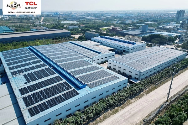 在工商业光伏领域,TCL光伏科技的电站已基本覆盖常见工商业屋面类型,如彩钢瓦屋面、混凝土屋面、TPO屋面和光伏车棚等。公司支持BAPV、BIPV等多种产品形式,累计赋能学校、机场、纺织厂、食品厂、高新科技产业园、精密制造厂、汽车组装厂、钢材制造厂、物流园、农牧渔场等近20种行业场景实现高效降碳、提升绿电占比、实现绿色转型。