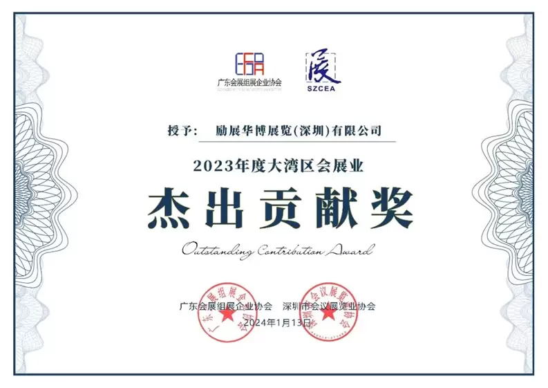 1月13日,以“聚合湾区会展力量探索行业先立后破”为主题的2024年深圳会展业高质量发展峰会暨第九届“国际组展人之声”论坛在深圳成功举办。本次论坛由深圳市商务局、前海管理局、宝安区人民政府作为业务指导单位,深圳市会议展览业协会、广东会展组展企业协会、福海街道党工委、办事处、深圳市招华国际会展运营有限公司联合主办。粤港澳大湾区会展业主管部门领导出席本次会议,30余位行业专家发表精彩演讲,参会代表近800人;包括励展华博展览(深圳)有限公司和励展(深圳)展览有限公司在内的大湾区及全国各地知名会展企业齐聚一堂,共襄盛会。励展华博展览(深圳)有限公司和励展(深圳)展览有限公司作为优秀会展企业,均荣膺2023年度大湾区会展业“杰出贡献奖”。