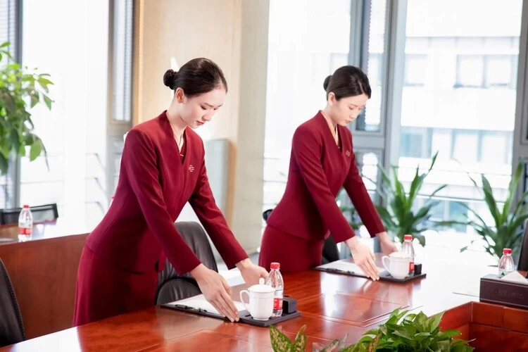 会中,针对会服人员的站位、走动都有严格要求,为参会人员续水的时机、动作、水温等也有明确规范;同时,在秩序维护上,专门加强岗位的排兵布阵,增设门卫进行双岗迎宾,员工服装整齐、行为规范、精神饱满。在环境保洁上,实施机关项目全区域保洁作业,员工一专多能,哪里需要就到哪里上岗。