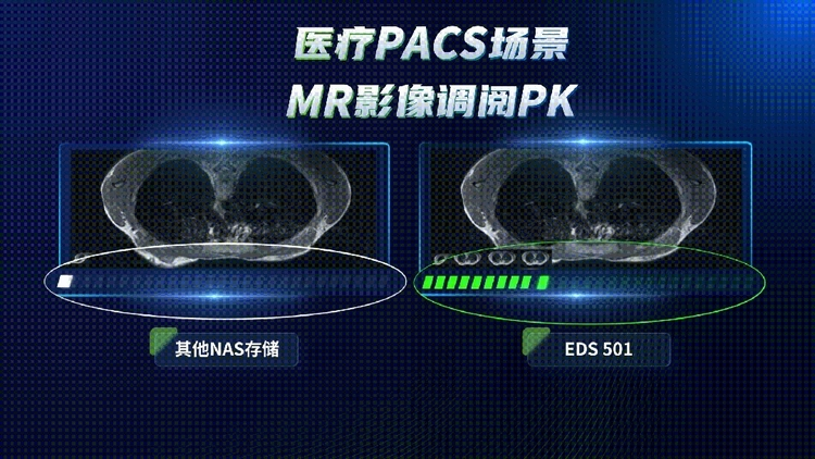 在PACS阅片场景,在业务高峰期阅片终端的图像加载速度可达到1000幅/s,数百位门诊、临床医生同时阅片、对存储系统产生高并发访问,阅片效率不受影响。