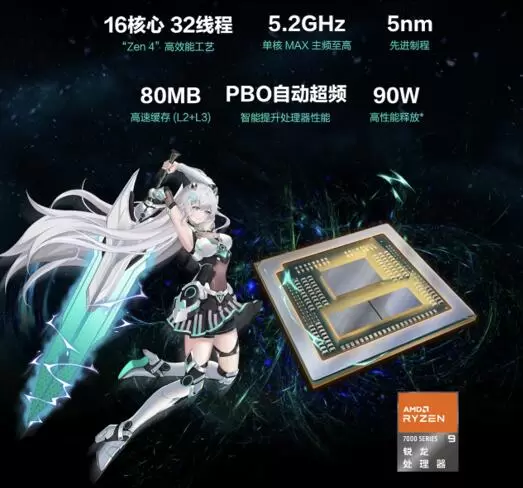 华硕天选5 Pro锐龙版首发AMD锐龙9 7940HX处理器,采用Zen4架构和5nm制程工艺,兼备强大性能与出色能耗比。拥有16核心32线程,最高加速频率达到了5.2GHz,同时具备80MB缓存,可提供强大的性能支持,助力玩家畅游3A大作。处理器还内置了Radeon 610M集显,在日常使用中可以切换至集显模式获得更长续航。