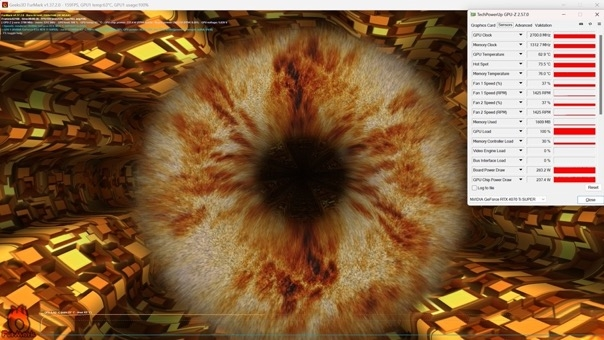 根据FurMark测试中,用户可以看到影驰GeForce RTX 4070 Ti SUPER金属大师 的GPU 功耗为283.2W,温度为62.9℃。全新一代寒光星δ(德尔塔)散热系统,让该卡在性能超强发挥的同时,实现持续稳定的温度控制,即便GPU处于满载功耗的情况下,其温度可以保持在持续稳定的状态。由于满载情况下的所需功耗达到了170.7W,所以建议选择影驰GeForce RTX 4070 Ti SUPER金属大师的用户在搭配电源时,使用功率为750W以上的电源设备。