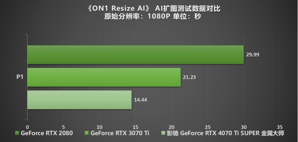 通过测试,影驰GeForce RTX 4070 Ti SUPER 金属大师对于图像的处理速度达到14.44秒。而GeForce RTX 3070 Ti 需要 21.23秒,GeForce RTX 2080的生产力则更加夸张,时间长达29.99秒。由此可见,作为内容创作者而言,一个好的搭档是如此的重要。
