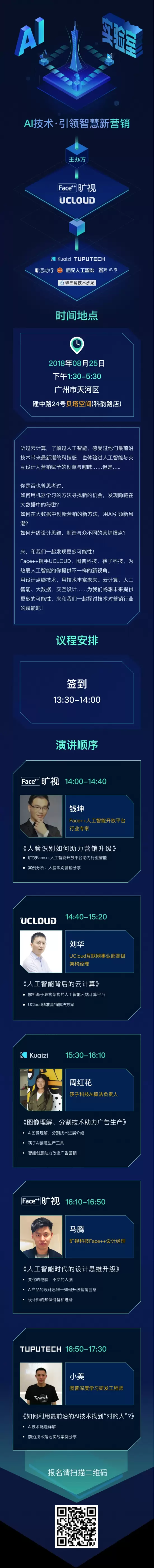 Face++携手UCLOUD、图普科技、筷子科技,为热爱人工智能的你提供不一样的新视角。用设计点缀技术,用技术丰富未来。云计算、人工智能、大数据、交互设计……为我们畅想未来提供更多的可能性,来和我们一起探讨技术对营销行业的赋能吧!