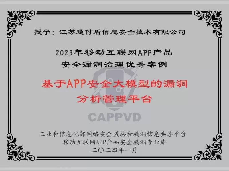 - 通付盾获2023年移动互联网APP安全漏洞治理优秀案例