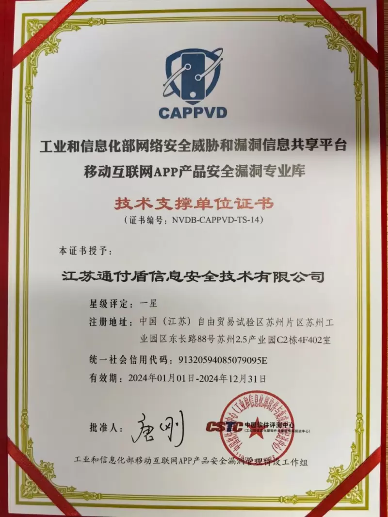 作为工业和信息化部网络安全威胁和漏洞信息共享平台移动互联网APP产品安全漏洞专业库技术支撑单位,通付盾将继续做好移动互联网APP产品安全漏洞管理工作,为保障我国移动互联网APP产品的安全稳定运行做出更大的贡献。