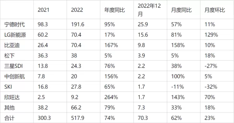 再看锂电池,国内公司在全球的市场份额中占据比重接近70%。其中宁德时代处于龙头地位,2022年锂电市场市占率为37%,比亚迪在国内紧随其后,为13.6%,为两大国内主要生产商。同时,国内市场容量的增长和政策扶持使得国内电池厂商都处于一个高速发展的状态。