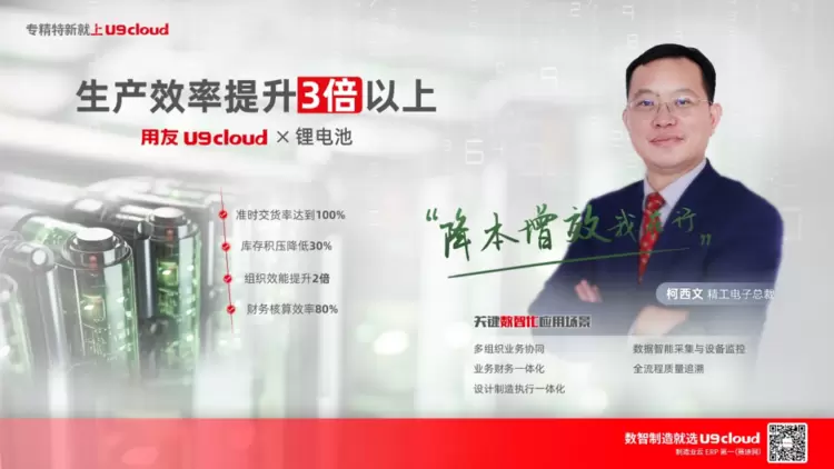 如精工电子CIO张文娟所言,借助U9 cloud,精工电子实现了对外协同、对内互联互通、网络化协同制造,多组织应用等,大幅提高了工作效率,给企业带来了实实在在的价值,有力支撑了集团“低成本、大规模、高速度”战略的实现。