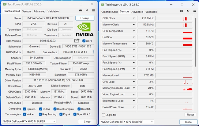 通过GPU Z,我们可以得到耕升 GeForce RTX 4070 Ti SUPER 星极幻姬 OC中具体的参数表现和实际规格。