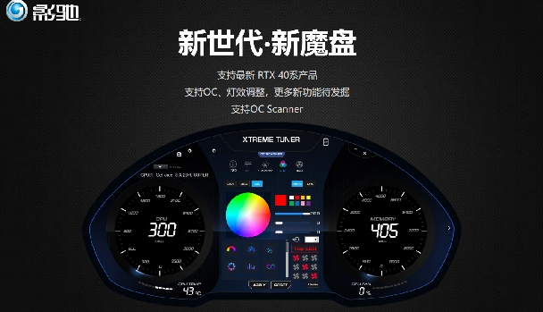 影驰的RTX 40系产品还加入了影驰 XTRME TUNER 新世代‧新魔盘,支持OC、灯效调整,支持OC Scanner等功能!让用户实现超频,温度监控等等,还有更多新功能等待发掘,尽请期待!