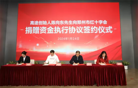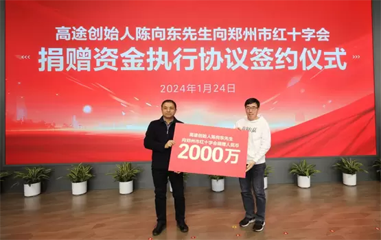 2024年1月24日,高途教育科技集团创始人、董事长兼CEO,高途佳品CEO陈向东向郑州市红十字会捐赠执行协议签约仪式在郑州高途中原总部成功举办,陈向东向郑州市红十字会捐赠2000万元。
