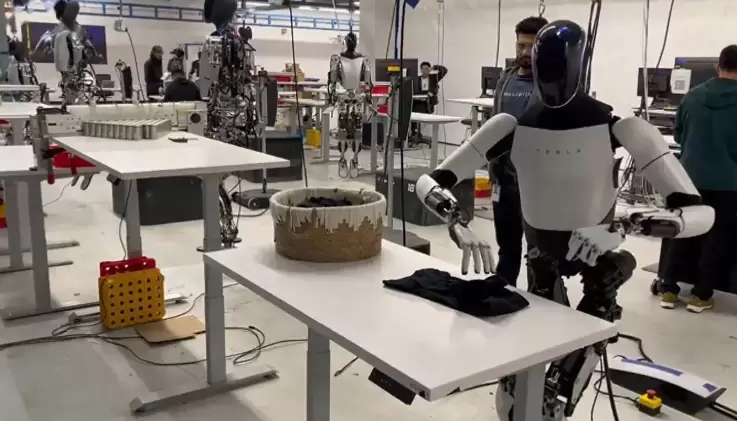 根据马斯克发布的视频显示,“擎天柱”站在一张桌子旁,慢慢地叠起一件黑色衬衫,似乎没有受到外力的任何帮助。不过所有这些都是高度脚本化和预先编程的活动,更多是为了展示机器人的关节、伺服器和肢体的令人印象深刻的功能。
