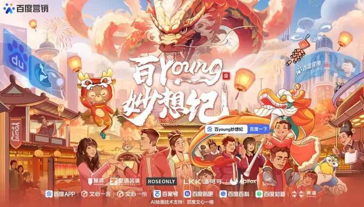 在今年的“双旦”期间,百度营销精准把握年轻人的消费市场,联合百度APP、文心一言、文心一格、百家号等多产品线流量资源,携手品牌客户慧择、聚通装潢、ROSEONLY诺誓、洛可可咨询设计、Apifox,特别合作上海南京路步行街,推出了“百YOUNG妙想纪”活动,诚挚邀请年轻人一起点亮妙想,共同创造一个充满节日气氛的狂欢时刻。