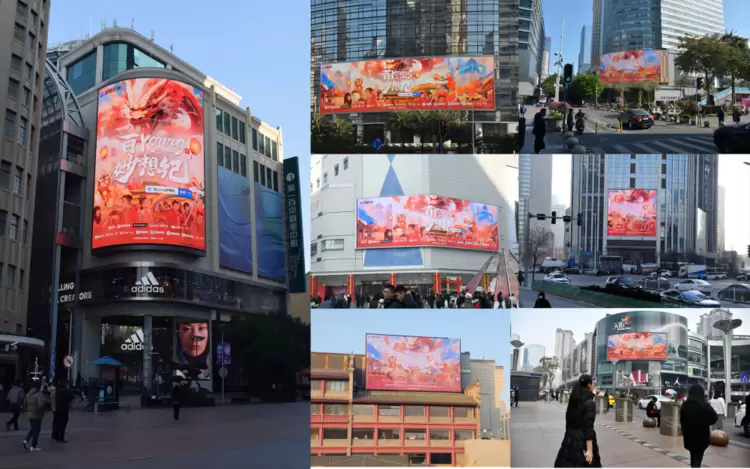 线下,百Young妙想纪在全国多城热门商圈大屏强势曝光。同时,线上社交媒体KOC协同扩散,百度APP站内流量资源同步倾斜,开屏、信息流全面覆盖,实现线上线下多场景立体曝光。