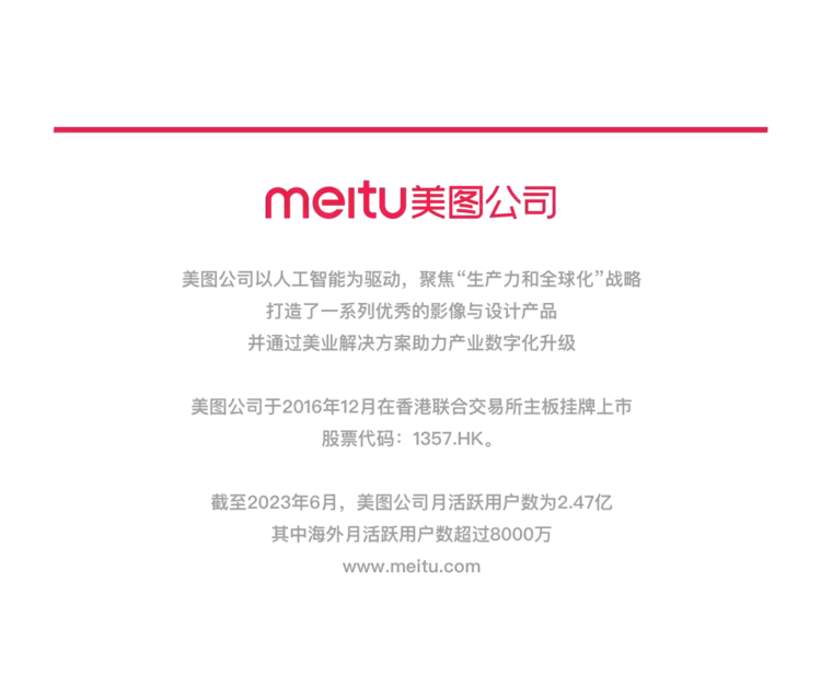 2023年,美图公司基于人工智能领域的持续探索,推出了AI视觉大模型MiracleVision(奇想智能),并以此为基石,构建了完善的人工智能产品生态。