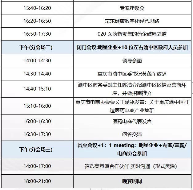 由渝中区人民政府主办,重庆市药品监督管理局、重庆市医疗保障局、重庆海关、重庆市经济和信息化委员会、重庆市商务委员会、重庆市大数据应用发展管理局、重庆市金融工作办公室等协办,联合药易购、四川神鸟数智大数据有限公司、重庆市电商协会承办组织本次论坛。旨在为我区医药产业注入新鲜血液,重构产业布局,打破历来生物医药创新主流对医药企业供给的制约,激活产业气氛,引流招商,促进MAH医药产业链,创新链,资金链的联动,推动医药产业的高效转化。本次会议形式灵活从战略签约、行业大咖演讲、专家座谈、闭门会议、1:1meeting、圆桌会议等均为各到访商家预留充足交流空间;内容丰富,从OTC、处方药、一类二类电商及跨境电商、私域流量、大工业构建互联网矩阵、小何健康数智化、抖音平台电商化、美团即时电商零售等全方位分享电商秘籍,为业界带来一场干货满满的知识美餐,为医药产业数智化手段赋能企业变革创新,共享医药工业电商发展机遇!