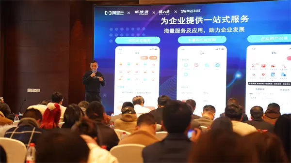 典名科技作为阿里云创业者计划的合作机构也在会议现场做出分享,高级架构师刘恒介绍了企业如何利用阿里云技术和钉钉平台实现全链路的数字化转型。