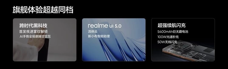 此外,真我GT5 Pro联合京东方首发4500nit无双屏,凭借超高的亮度、出色的显示、极致的护眼,成为目前行业第一1.5K屏。外观设计上,真我GT5 Pro带来赤岩、皓月、星夜三款配色,前两款采用高阶科技纳米皮材质,星夜则采用星闪AG玻璃工艺,中框采用超硬铝金属材质,强度超越钛合金;旗舰体验上,真我GT5 Pro搭载5400mAh巨无霸电池、100W光速秒充、50W无线闪充,还带来疾速掌纹解锁和AI手势操控等实用黑科技。
