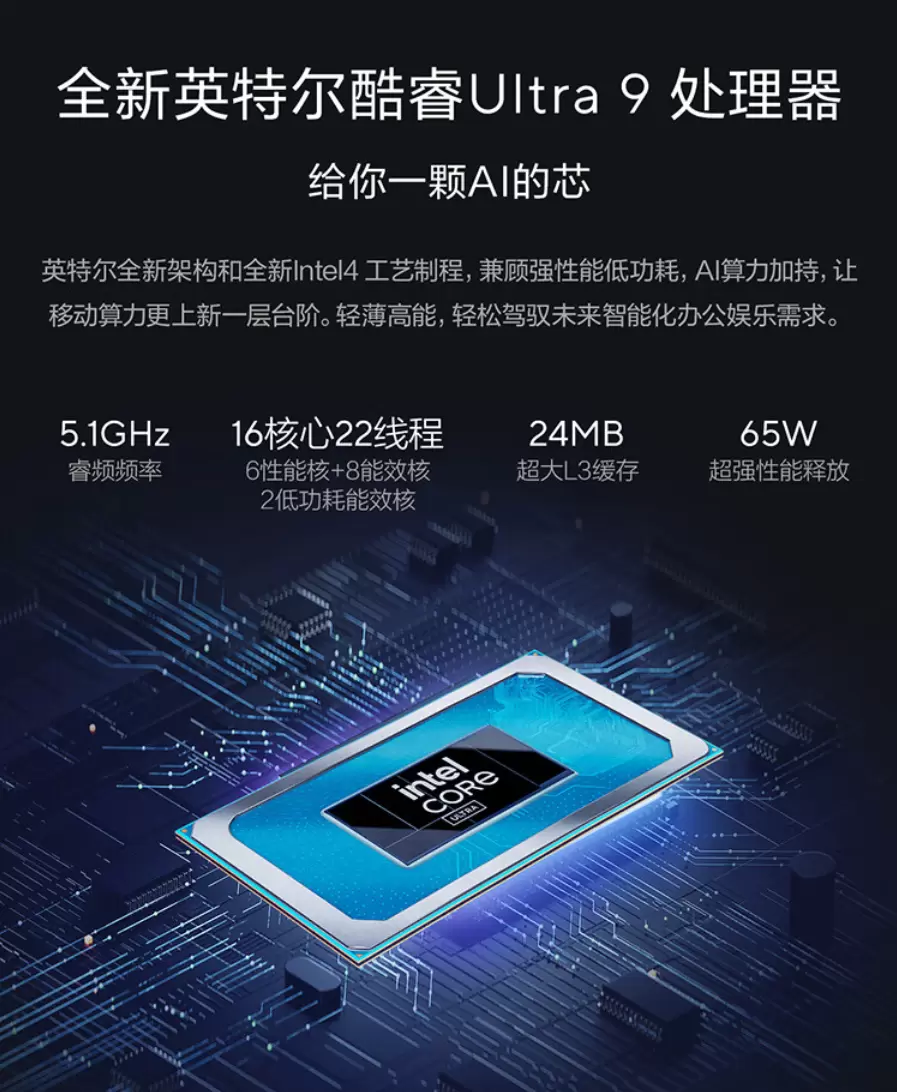 华硕无畏Pro15 2024将搭载英特尔酷睿Ultra 9处理器,采用英特尔全新架构和Intel 4工艺制程,拥有16核心22线程设计,睿频频率高达5.1GHz,24MB超大L3缓存,可实现65W超强性能释放。CPU+GPU+NPU三大核心芯片联合释放本地AI超能力,带来强大的AI算力,在不联网的状态下可正常运行高达上百亿参数大语言模型,且本地支持AI生图,修图剪辑,大片秒出;AI专属芯片NPU支持视频会议美颜、背景虚化、降噪以及图形增强等AI应用低功耗运行。