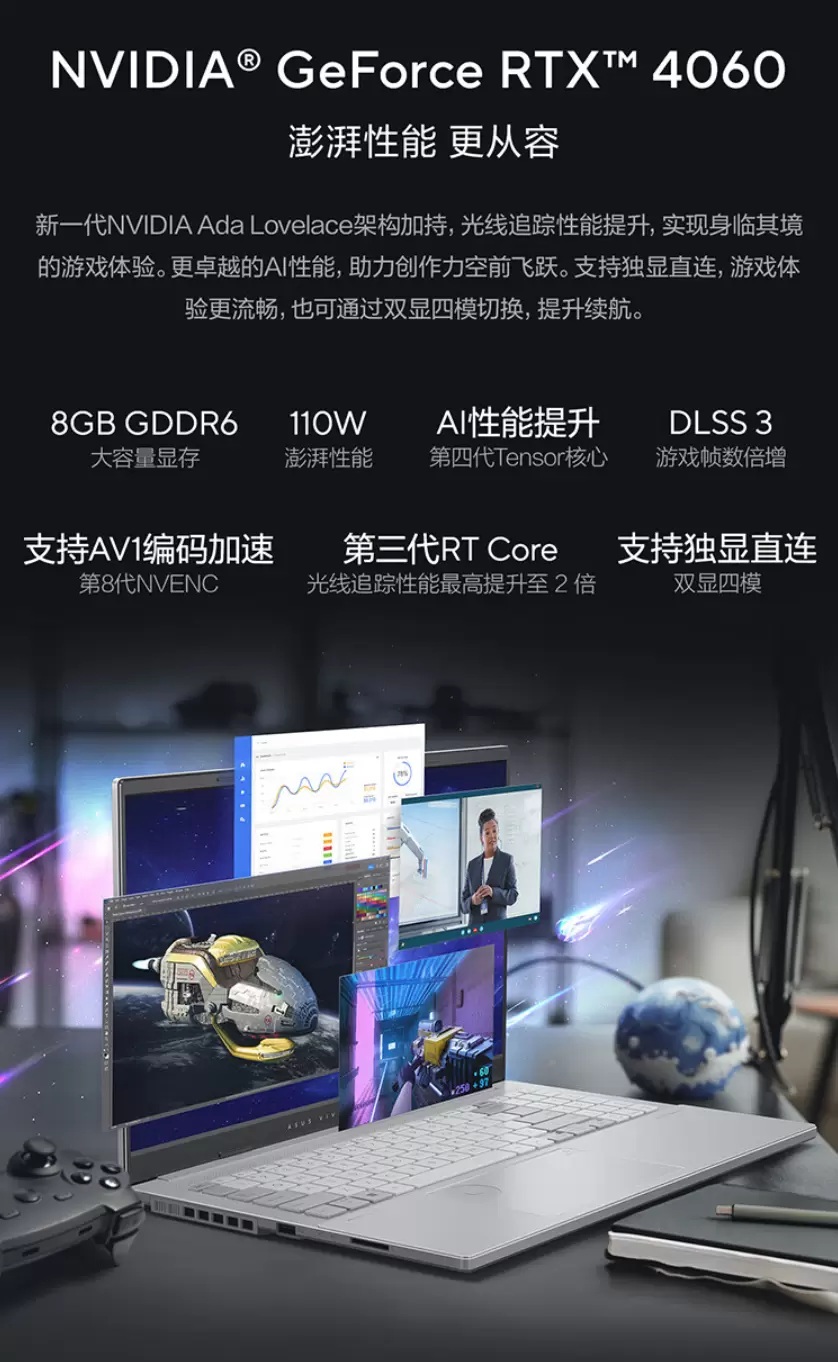 - NVIDIA DLSS 4 技术加速游戏体验,沉浸3A首选华硕天选6 Pro锐龙版