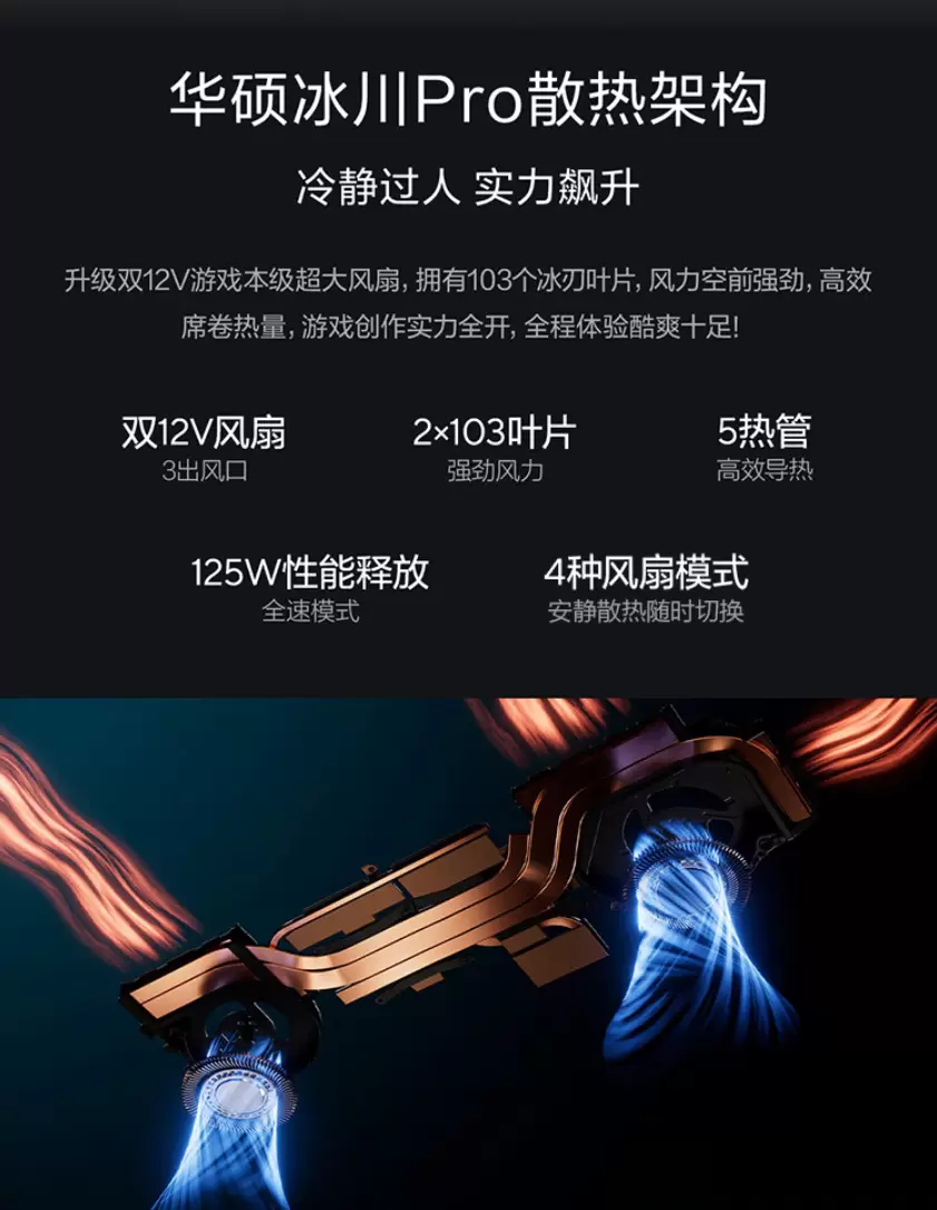 面对强悍核心配置的性能输出,华硕无畏Pro15 2024内置独家冰川Pro散热架构,5热管设计高效导热,2个103叶片的12V游戏级风扇带来强劲风力,让散热效率更高,4种风扇模式全场景适用,全速模式下整机性能释放高达125W,无论创作设计、观影聊天还是游戏娱乐,都能轻松应对。