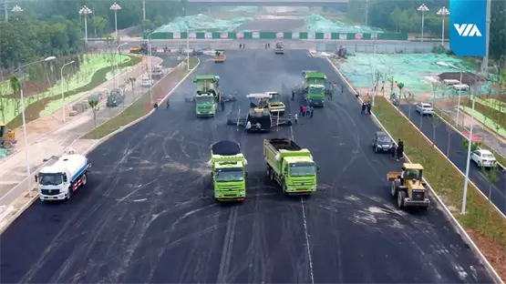 在路面施工中,以往存在施工机械高大、行驶快速、环境复杂,易忽视远方人员的盲区等安全隐患。