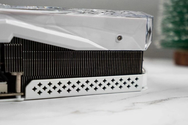 星卓 III 散热系统还配备有有 4*Ф8mm+5*Ф6mm镀镍复合热管,加强抗氧化的能力。配合大面积的高效均热板和鳍片,结合回流焊接工艺,带来强劲散热性能。配合高强度的铝合金中框链接PCB和散热器,在确保散热效果的同时进一步提升保护能力,防止显卡变形,保障显卡的正常使用。