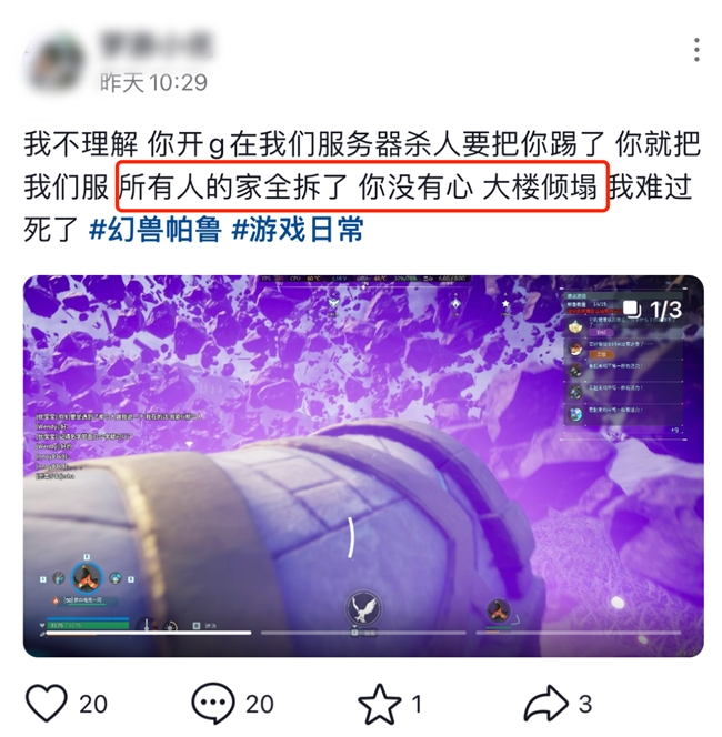比如:辛辛苦苦建的家,半夜出去抓帕鲁,回来发现家被偷了。帕鲁被掳走,游戏成果被洗劫一空……