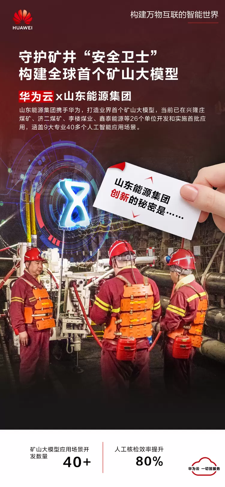 在政策利好与市场需求持续释放的双重驱动下,山东能源将坚定打造一流的能源行业数字化解决方案提供商的战略定位,基于盘古视觉、预测大模型基础上,采用盘古多模态和自然语言大模型,进一步做深决策智慧、企业管理智能化能力。同时,聚焦聚力矿山、洗选、化工、电力、新能源新材料等领域智能化建设,始终坚持开放合作、与“巨人”同行,持续深化与华为公司在技术、管理、文化等方面交流与合作,基于华为云Stack将盘古大模型复制推广到千行万业,打造行业领先的AI应用合作平台,深度用云,让行业都拥有自己的专属大模型,加速行业智能升级。